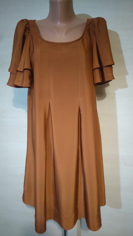 Платье свободного кроя с рукавами воланами.Пог 44 см, Пот 56 см, Поб 74 см, длина платья 90 см.
