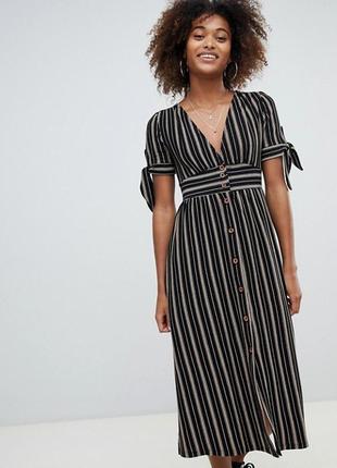 Полосатое платье миди фирмы Pull&Bear Размер указан М Произведено в Португалии Состав ткани: 75% хлопок, 25% полиэстер Замеры в не растянутом состоянии: ПолуОбхват под рукавами - 42 см ПолуОбхват в поясе - 37 см ПолуОбхват в плечах - 31 см Длина по спинке - 115 см Состояние новое, с этикеткой