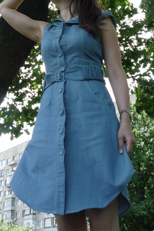 Очень интересное платье. Есть карманы и капюшон. Сзади как запах. Размер по набору указан XS, мой размер был М – 38 (с настройками 88/71/95), поэтому где-то на S. Есть возможность перешить пуговицы, если есть желание подогнать по фигуре. ПОГ 43 см, ПОТ 36 см (свиную же можно немного регулировать пуговицами). Длина 94 см.