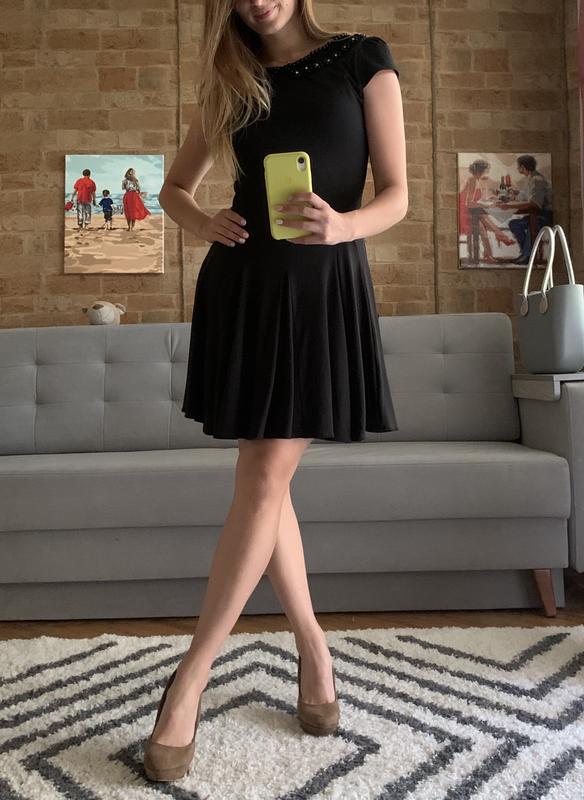 Чорне плаття з аксесуарами «кольє». Розмір М. Знизу є підкладка, від талії по спідниці красивий крій, який робить спідницю пишнішою. Тканина - стрейч. Гарно лягає по фігурі та добре тягнеться. • Всі заміри на фото ☺️