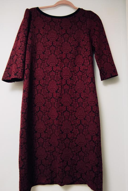 Стильное платье-футляр в котором вы будете непревзойденны. Ничего лишнего, красиво ложится по фигуре, скрывает недостатки Длина 96; рукав - 42; грудь -45; бедра -50. Подойдет на 48-52 размер. Учитывайте ткань тянется, могут зайти и более крупные параметры