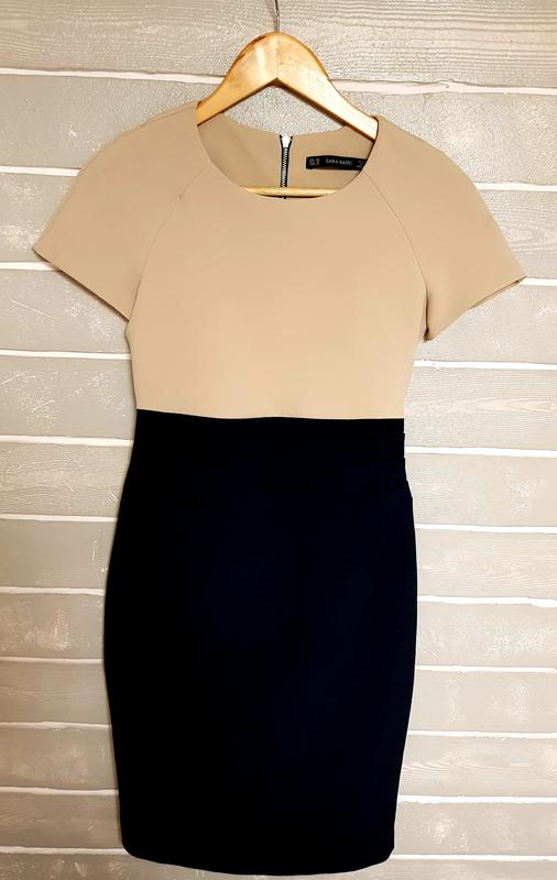 Ділове плаття від ZARA. Стан ідеал, сідає чітко по фігурі. Тканина плотна, добре тянеться. Колір бежево-темно синій. 👆 Замок ззаду додає елегантності. Додаткові фото і заміри скину, пишіть😉 Дякую)