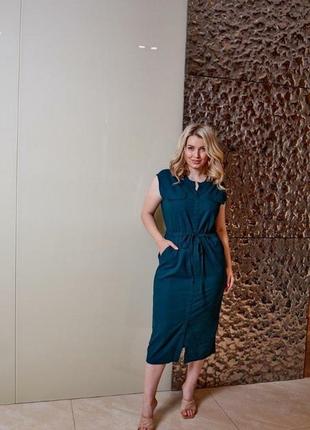 Сукня арт. opt. Ціна 510 грн Розмір: 42-44, 46-48, 50-52, 54-56 Тканина: льон Колір: пудра, беж, т. синій, пляшка, корал Сукня жіноча лляне нижче колін з коротким рукавом, з кишенями, затягується на поясі