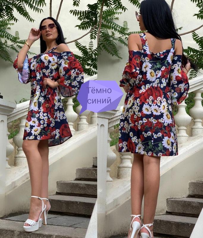 Платье летнее, красочное, невесомое. Пр-во фабричный Китай, материал шифон. Размер М полномерное, по бокам небольшие кармашки,рукав 3/4. В наличии две расцветки:на синем и тёмно синем фоне.