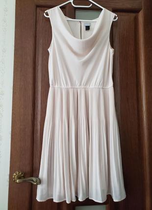 шикарное платье цвета нюд, нежное и не жаркое, можно носить под пояс или без, ткань в виде шифона. длина 95, в груди 46, но можно и больше за счет кроя, талия резинка 36, тянется до 50.