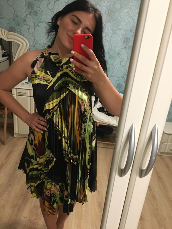 Очень классное платье. Носила его с размером с и л, оно подойдёт на любой. Приятная ткань к телу. Есть возможность одеть под пояс { он есть } Около шеи завязывается на бант
