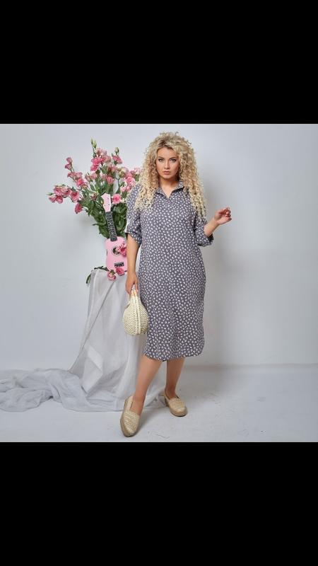 Платье рубашка 1353 Ткань: летний лён с принтом цвет : светло серый, горчица, графит размеры: 48 50, 52 54, 56 58, 60 62 цена 450 грн Markova