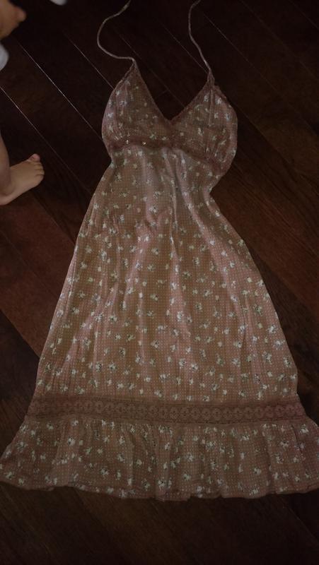 Легкий, воздушный, натуральный ) сзади завязывается за шеей, плечи и часть спины полностью открыты.