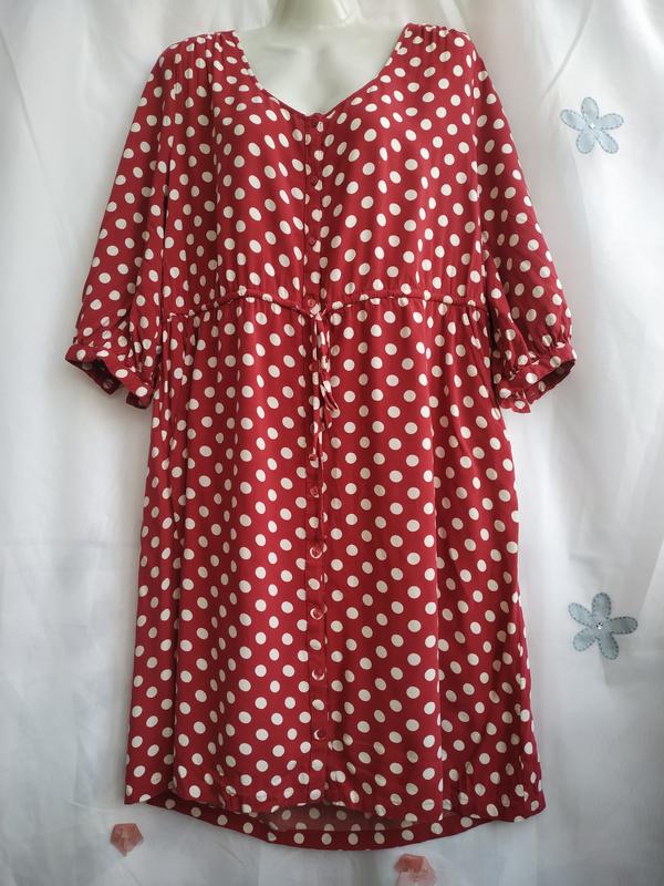 МОДНОЕ ПЛАТЬЕ В ГОРОХ НА ПУГОВИЦАХ. ПОГ 61 ПОТ. 53 ПОБ. 66 ДЛ. 97 бицепс 40