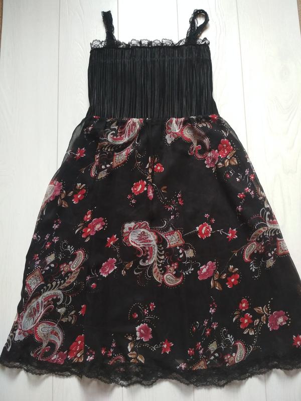 очень нежное, красочное платье.низ тонкий шифон, верх гафрированной.длина 88 см.