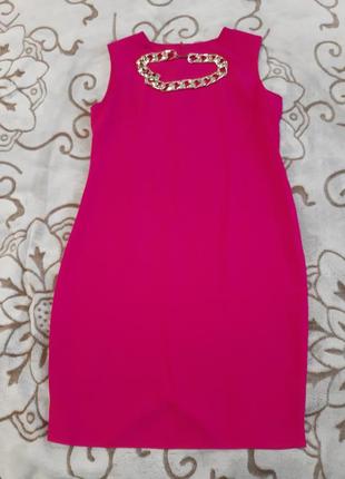 Продам дуже гарне, ошатне плаття. Колір фуксія, класичного крою, без рукавів, рівне, ззаду розріз, застібається на спинці змійкою. У комплект йде прикраса-ланцюжок.