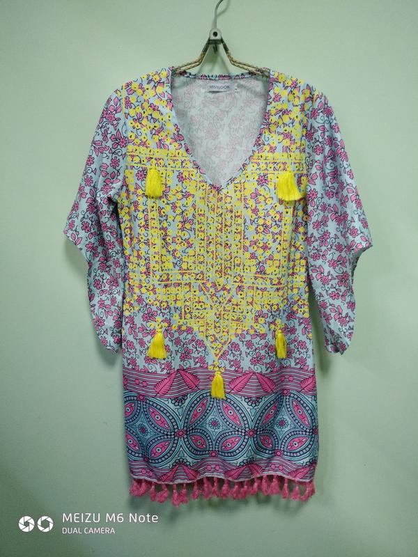 Платье в восточном стиле,можно носить гп пляже как тунику.Очень красивое,цвета насвщенные,интересные рукава(фото 3). Замеры: Длинна 92см Плечи 39см Под рукавами 48см Смотрите другие мои обьявления,есть много интересного,подписывайтесь.Перед покупкой ознакомтесь с информацией обо мне.