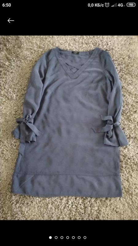 Новое! Стильное платье Извините за качество фото Цвет как на третьем фото Прямого кроя На рукавах завязки 100% Modal Длина - 93см Полуобхват груди - 52 см Бёдра - 57см Плечи - 43см Рукава - 61 см