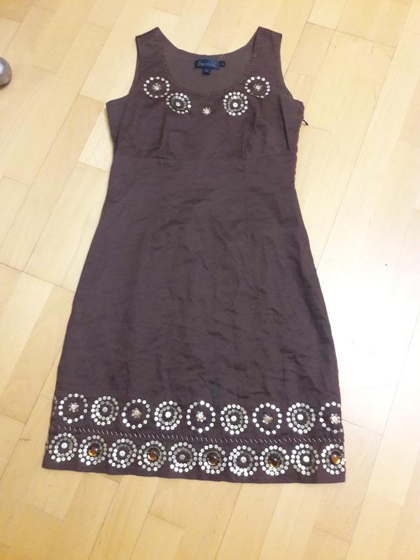 Платье коричневого цвета на подкладке. Хлопок 100%, подкладка хлопок. ПОГ 43 см, ПОТ 37см, ПОБ 51 см, длина 92 см.