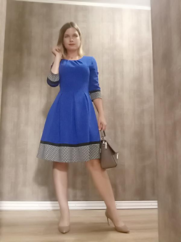 красивое 👗 насыщенного синего цвета, рукав 3/4, длинна миди, застёгивается на спине на змейку. есть петельки для тонкого ремешка. надето на параметры рост 168, 92-68-100, в талии если место ещё 5 см, бедра свободны, в груди 88-92см будет хорошо, длинна середина колена, 100см. Без дефектов.