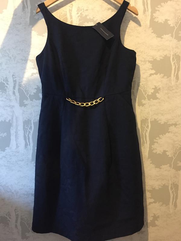 Платье было куплено пару лет назад на официальном американском сайте. Причина продажи - маловато, так и висит в шкафу. Платье на выход, не на каждый день ) Ни разу не одевалось, только мерялось 1 раз. Платье качественно пошито, с хорошей фурнитурой, цепочка «золотая». Ещё тот старый, добротный Tommy Hilfiger ))) Американский размер 12 - XL Длинна - 95 см. Пот - 42,5-43 см. Поб - 66 см. В груди четко точно сказать трудновато, так как верх с выточками. Реальному покупателю вышлю все возможные дополнительные замеры/ фото/ видео. Сама ткань плотная и фактурная с красивым узором, красиво держит форму - 100% коттон Насыщенный темно-синий цвет. Красивая драпировка и складки, на более худую девушку чем я сядет очень красиво ))) Доставка: Новая Почта Джастин Укрпочта