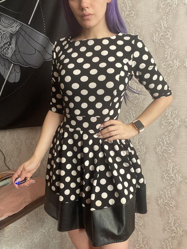 Красивое плотное платье с вставкой из кожзама.