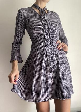 Легкое платье клеш с рукавами 3/4. На шее воротник- завязки.