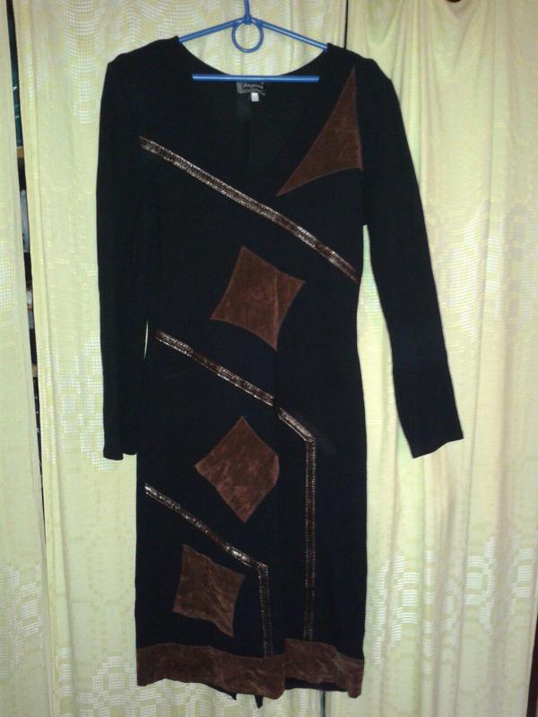 ПОГ - 40 см, трохи тягнеться, талія 36 см, довжина 100 см, від плеча до плеча - 40 див. Замшеві вставки.