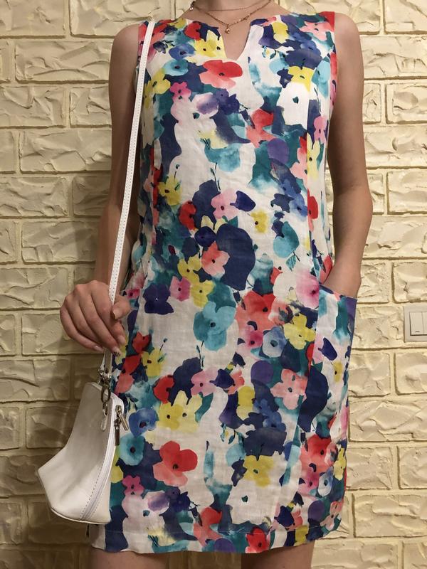 Платье на подкладке в идеальном состоянии в хорошем качестве! Верх ЛЁН 100%. Подкладка хлопок 100%. Грудь 93см.длина86см. Бедра 104см.