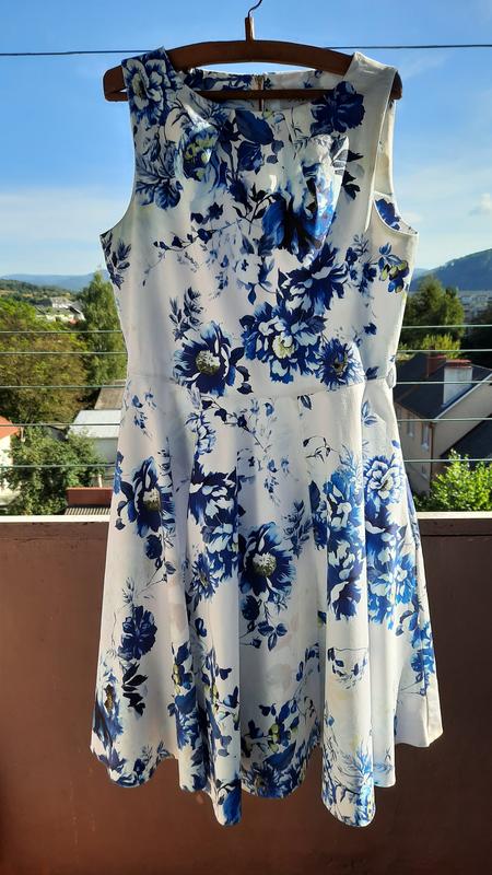 Шикарное платье с юбкой солнце CLOSED в отличном состоянии, только потерялся поясок. По всей основе разбросаны бежевые цветы и листья (показала на фото),это как бы второй план узора, очень нежное. Длина-98см, пог-51см, пот-41см. По бокам карманчики. Ткань плотная-хорошо держит форму.