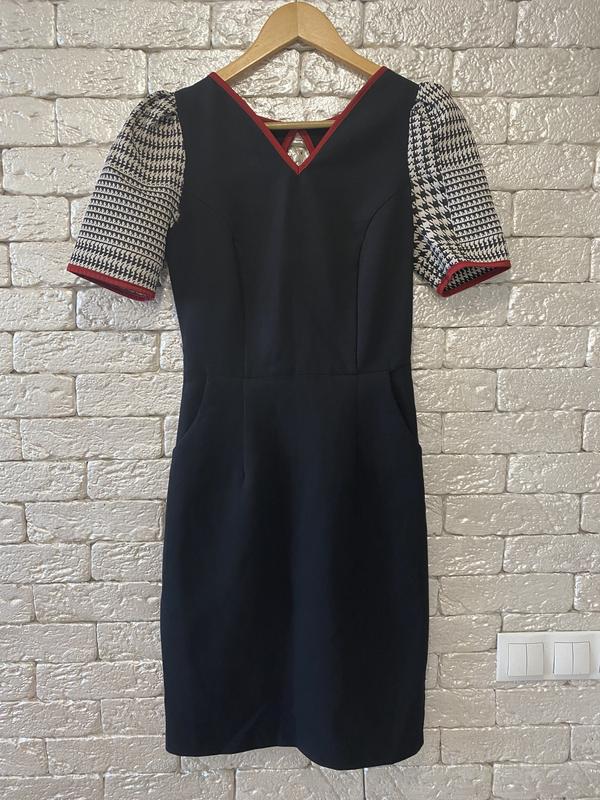 Сукня олівець з костюмної тканы. Розмір s, колір чорний/гусяча лапка. Дуже гарна спинка, є кишені, можна носити під пояс. Сукня гарно підкреслює талію, довжина за коліно