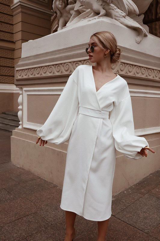 Красный, белый, беж, черный Размер: 42-44, 44-46 Размер 46-48, 48-50 +200 грн Платье из костюмной ткани с объемными рукавами.завязывается на запах, что позволяет регулировать размер и выделить линию талии❤️ Обхват груди 96 см Обхват талии 74 см Обхват стегон 106 см Длина рукава 61 см Длина изделия 122 см Отправка после 100% оплаты, новой почтой 1-3 рабочих дней, укр — только в те города, где не работает новая почта