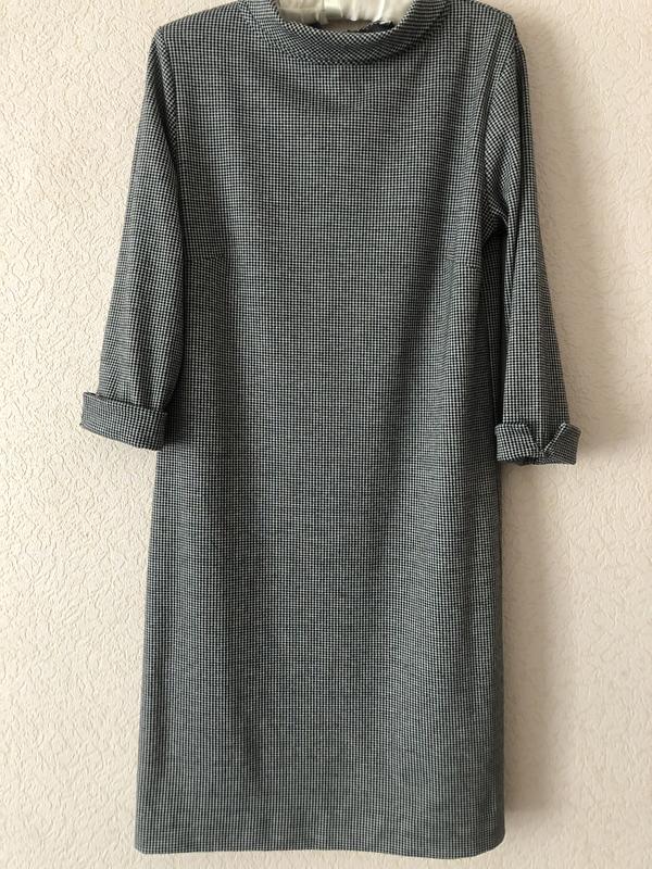 Плотный трикотаж, не растянут и не обтягивает. Свободного кроя. Без дефектов. Плечи-40,рукав-43, пог-46, длина-90. Поб-46