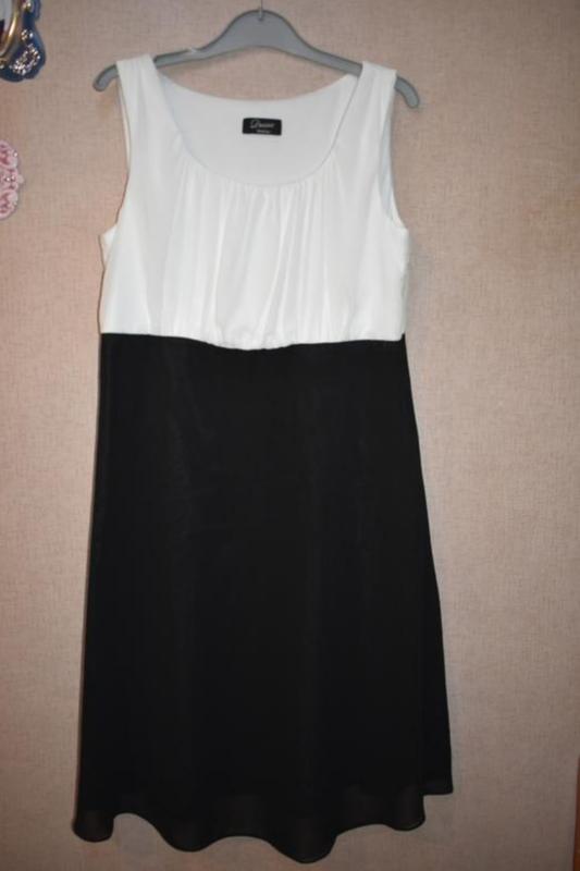 В идеальном состоянии, новое без бирки. Шикарное качество. Сбоку потайная молния. Замеры: подмышки 47 см+тянется до 54 см ; по линии разделения 44 см ; ПОБ 57см ; бедра свободно; длина белой части 35см ; длина полностью от плеча 102 см ; длина полностью по спинке 96 см,