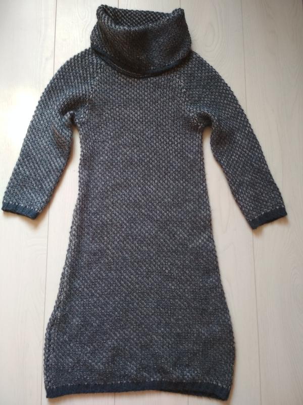 платье-туника,вязаная ,очень теплое,рукава 3/4,длинна от плеча 84 см.цвет голубо-серый.