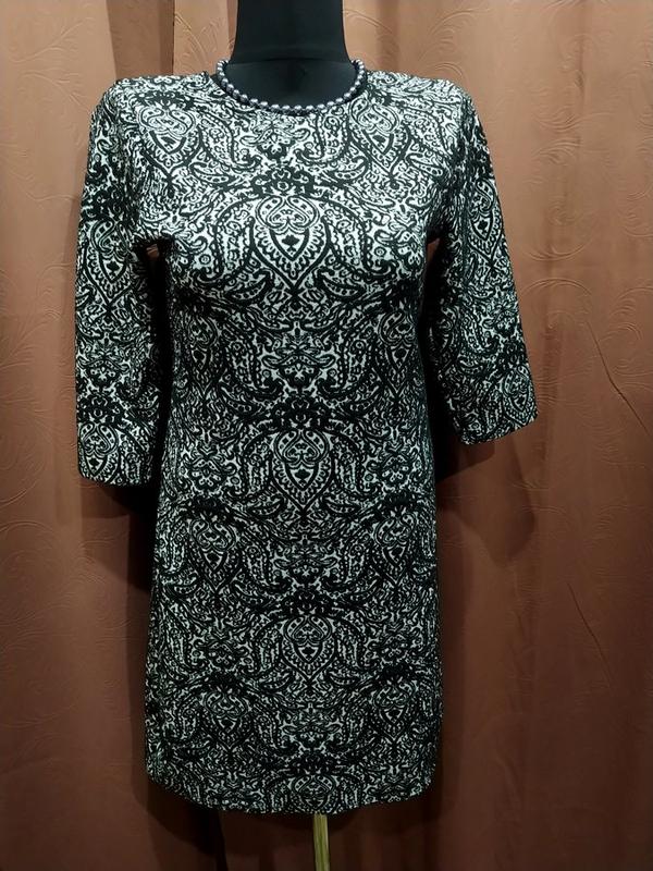 Платье деми 48 черно-белое,с выдавленным рисунком,состава нет, в идеальном состоянии,ПОГ 46-52,ПОТ 43-50,рукав укороч.43,длина 90.Плотный трикотаж.Манекен 46р.