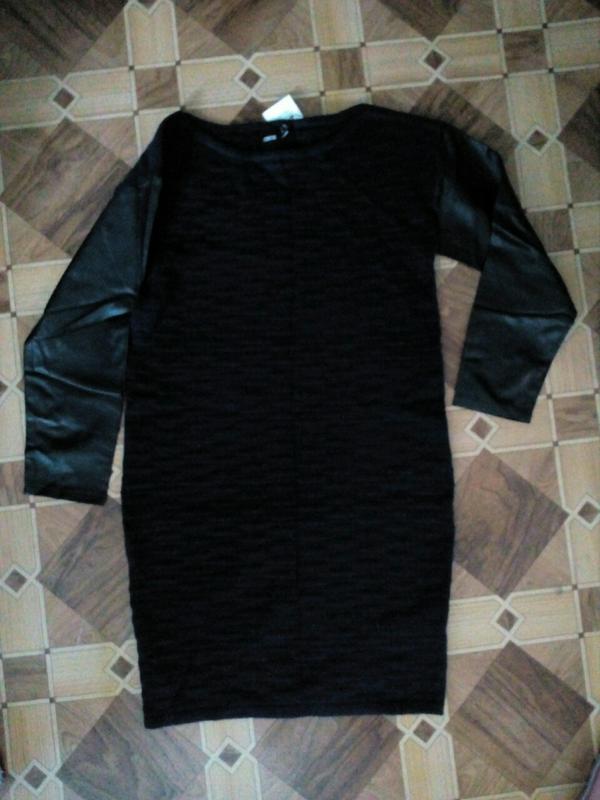 Теплое платье-туника, рукава кожзам, цвет тёмно-синий.