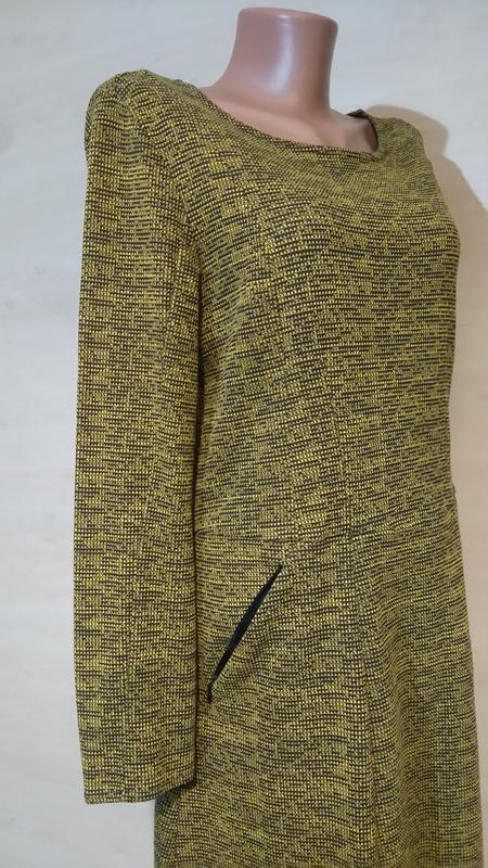 Трикотажное платье горчичного цвета,интересного кроя с карманами на потайных молниях и длинным рукавом,ткань тянется. .Пог 48 см, Пот 44 см. Поб 52 см, длина рукава от горловины 70 см, длина платья 98 см, плечи 41 см.Очень удобное в носке: не мнется,приятное к телу ,хорошо сидит на фигуре,есть кармашки.Очень практичное платье.После стирки не нуждается в глажке!
