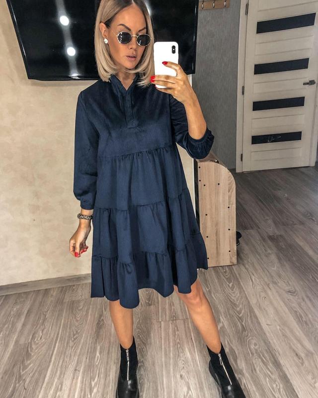 Сукня Арт. : 3046 Ціна: 440грн Розміри: 1(44-46) 2(46-48) 3(48-50) Опис: комір стійка, довжина 95 Тканина: турецький вельвет