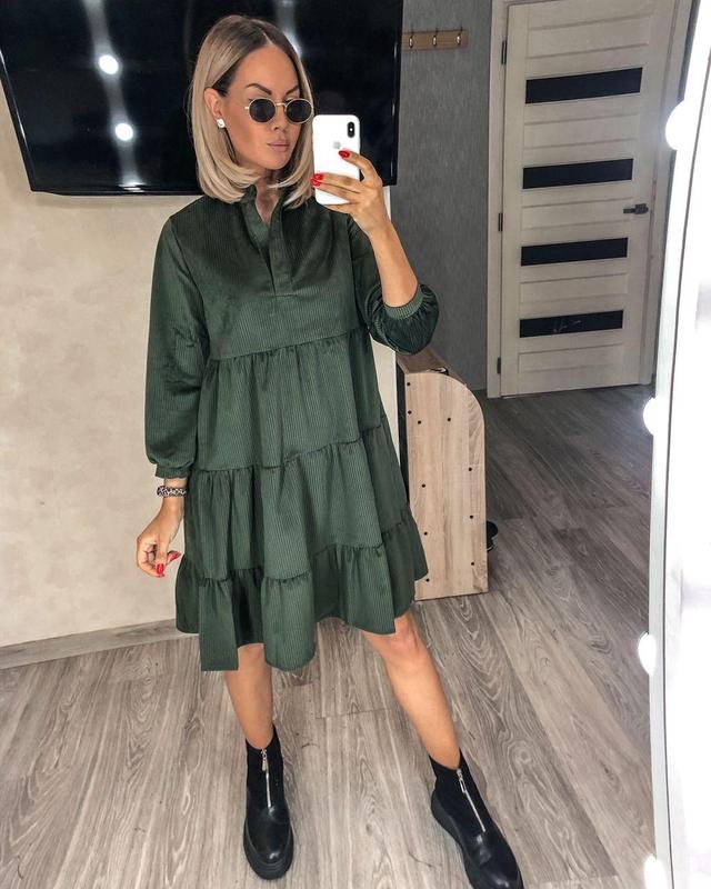 Сукня Арт. : 3046 Ціна: 440грн Розміри: 1(44-46) 2(46-48) 3(48-50) Опис: комір стійка, довжина 95 Тканина: турецький вельвет