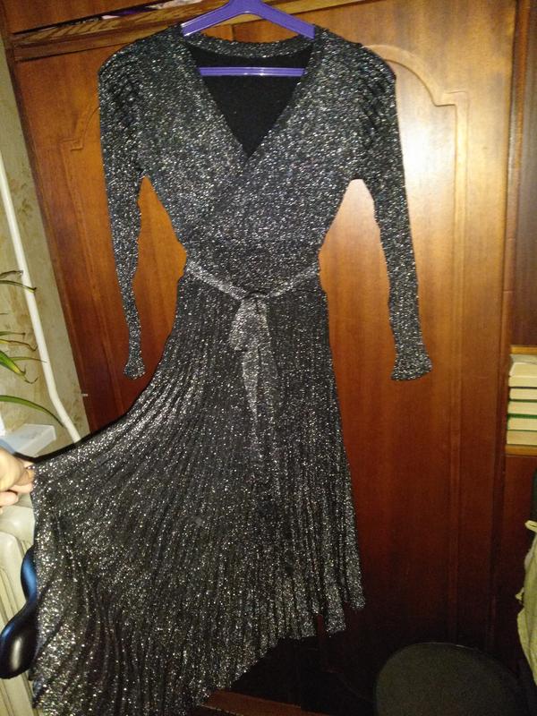 Новое платье. Прогадала с размером .Подойдёт на 36 размер. Длина 105. Грудь 80-95, талия 60-74. Трикотажная машинная вязка с люрексом, не кусается.