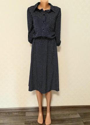 🦋Шикарное платье в белый горошек на темно-синей ткани придает платью легкости, женственности, романтичности. Платье отрезное по линии талии. На груди накладные карманы. Рукав 3/4,можно регулировать длину. Юбка платья расклешенная. Размер 50-54 🤩 В таком платье любая женщина выглядит эффектно. Мерки предоставлю по запросу)))