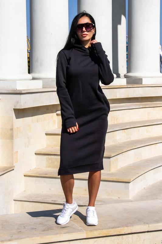 Модель 394.2432 👉Цена 450грн 🔥 Тёплое платья с ушками 💋 Из трёхнитки на флисе 📝Размеры 42-44 46-48 50-52 ☑Цвета черный, беж, жёлтый и голубой 📌Есть карманы 📌 Манжеты рабочие 📌 Разрезы по бокам