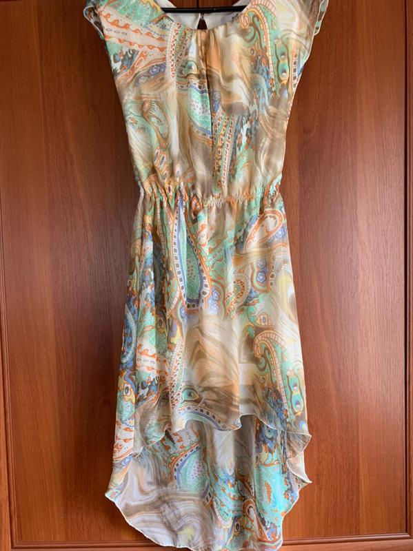 Шифонова літнє плаття зі шлейфом. Бренд ADL Розмір 38 (s-m) Довжина спереду 81 см Ззаду 106 см