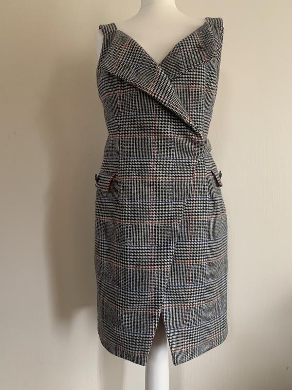 Трендовый сарафан этого сезона в клетку. Ткань шерсть , на яркой красной шёлковой подкладке . Дополнен пуговицами Chanel .