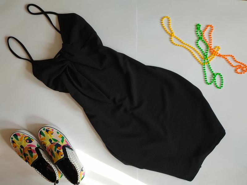 Стильное строгое вечернее платье на тонких бретелях. Полностью по фигуре .Размер 46-48. Сзади - шлица. Спереди под грудью - бант. Ткань средней плотности, хорошо тянется, не просвечивается, скрывает неровности фигуры .