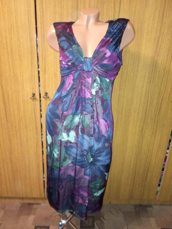 Очень красивое платье, камера не передает! Ткань и рисунок, как бы переливается. Есть подкладка. ОГ 86-106 см ОТ 76-90 см ОБ 100-120 см Длина 101 см
