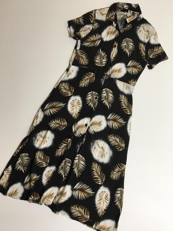 Стильне плаття міді з кишеньками, защіпається на гудзики, легенька тканина 100% віскоза , в дуже гарному стані, розмір вказано L {трошки маломірить думаю краще буде на М, тому дивіться заміри.} Заміри: ПО під рукавами 43, ПОТ 37,5, ПОБ 50, плечі 37, довжина плаття 110.