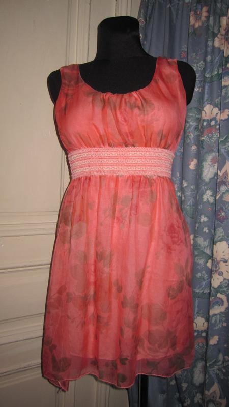 платье розового цвета.полиэстер.подкладка-вискоза.ПОГ 44.ПОТ 30.на талии резинки.длина переда 84.зад-92см