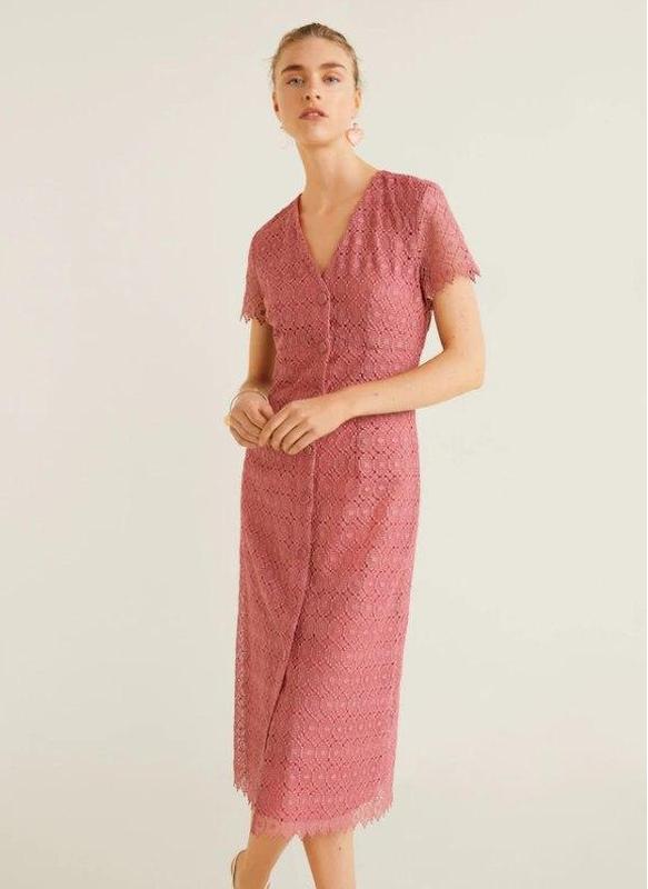 Гарна мереживна сукня з підкладкою. Колір такий як на фото з каталогу. Заміри: довжина від плеча до подолу - 116 см; груди - 42 см; пояс - 37 см; бедра - 47 см.