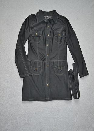 Платье с рукавами из лёгкой джинсовой ткани с карманами и поясом. Длинна: по спинке (без воротника) 82 см. Полу обхват под рукавами 44 см.