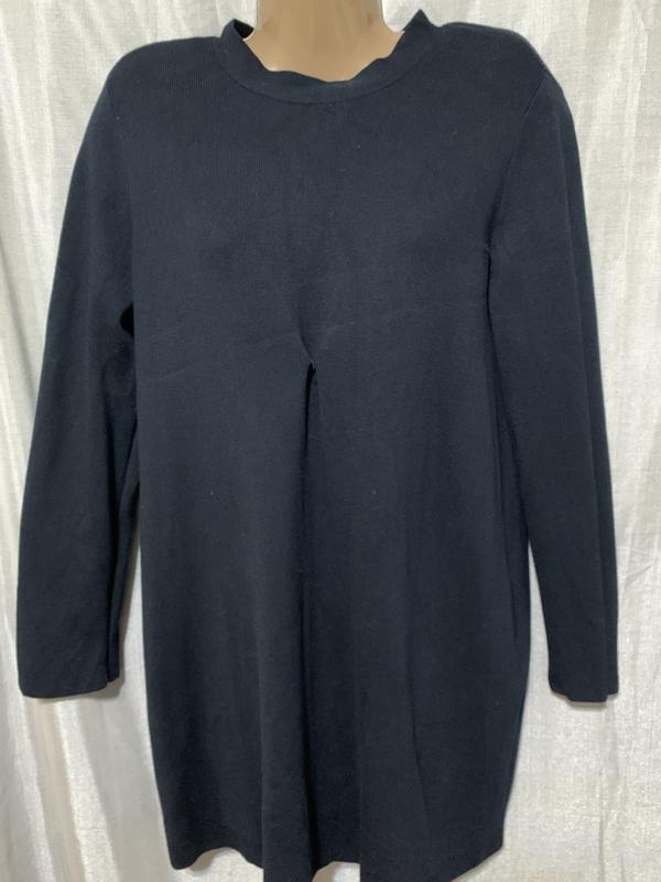Сукня з щільного, але м'якого трикотажу вільного крою, горловина ззаду зав'язується на бант. Заміри: довжина - 90см., плечі - 38см., рукав - 63см., ПОГ - 49см., ПОТ - 53см., ПОБ - 59см