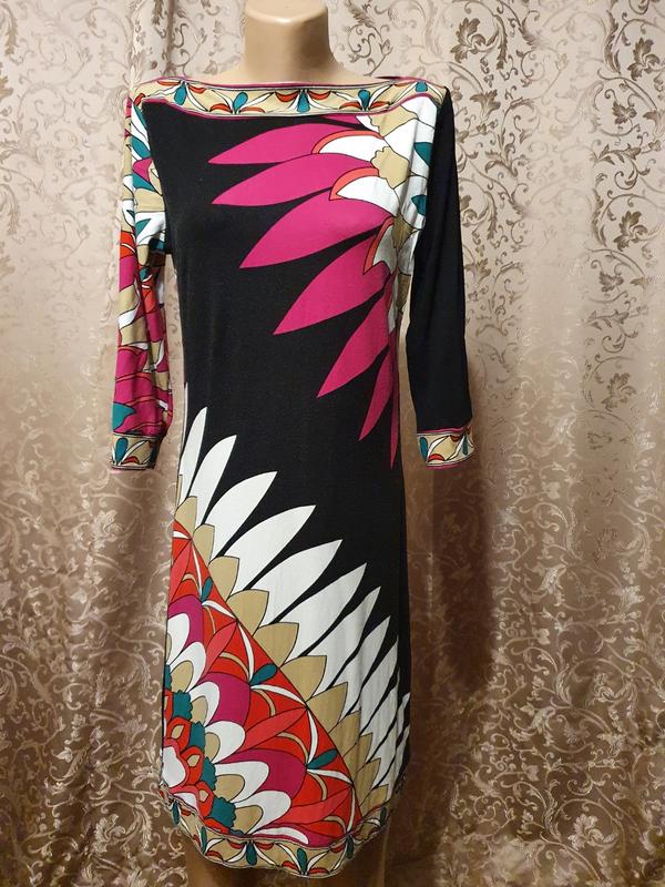 ТИМЧАСОВО НЕ В НАЯВНОСТІ!!! Платье с красивым принтом и красивым вырезом лодочкой. Есть катышки в одном месте, в носке не видно. Замеры по запросу.