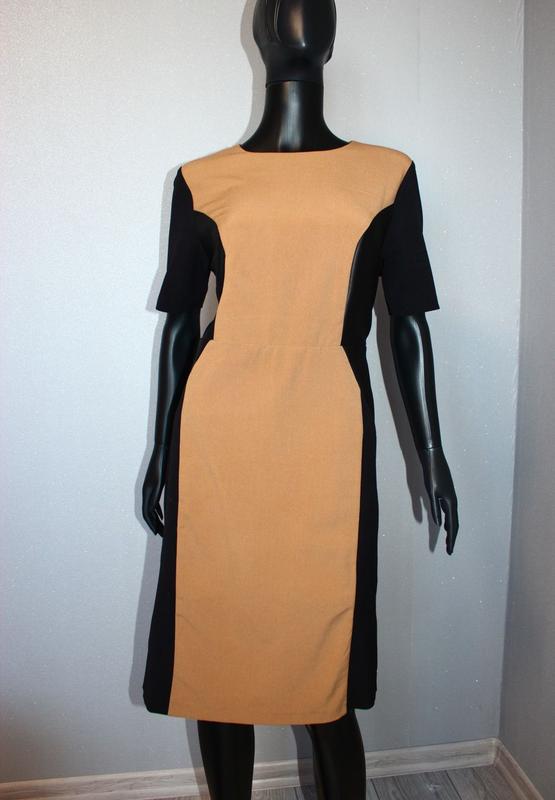 Плотное базовое миди платье качественного бренда SAVOIR Благодаря центральной бежевой части отлично вытягивает, а черные боковые части визуально убирают как минимум один размер, формируя фигуру. По бокам кожаные вставки (искусственная кожа), разница фактур делает его еще более интересным и самодостаточным. В идеале, сток, без бумажных этикеток. Есть немного зацепок на подкладке, в этом отличие от нового. Состав: 62% полиестер 32% вискоза 5% эластан/ вставки 94% полиестер 6% эластан Размер указан 14: длина 98 см, ПОГ 50-52 см, ПОТ 44-45 см, ПОБ 52-54 см.