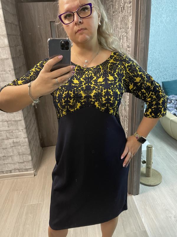 Классическое трикотажное платье темно-синего цвета, верх комбинирован с вышивкой, хорошо тянется, красиво подчеркивает фигуру. Размер 56-58 Мерки без растягивания: ПОГ 54 ПОТ 52 ПОБ 60 Длина 105
